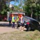 aparentemente porque el conductor se distrajo con los partidos que se jugaban en el Polideportivo Néstor Kirchner. Afortunadamente no hubo heridos 🙌 y agentes de Tránsito...